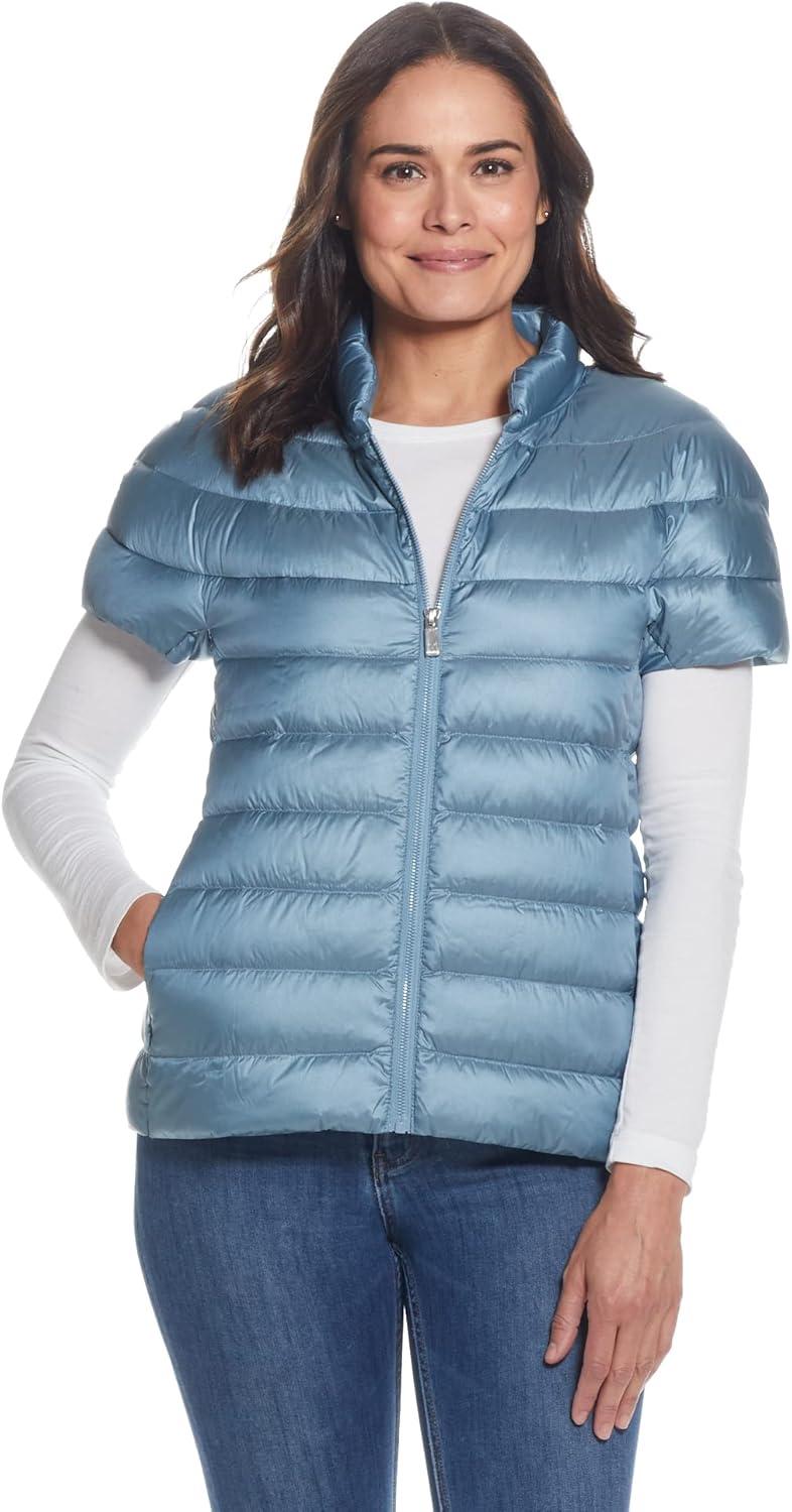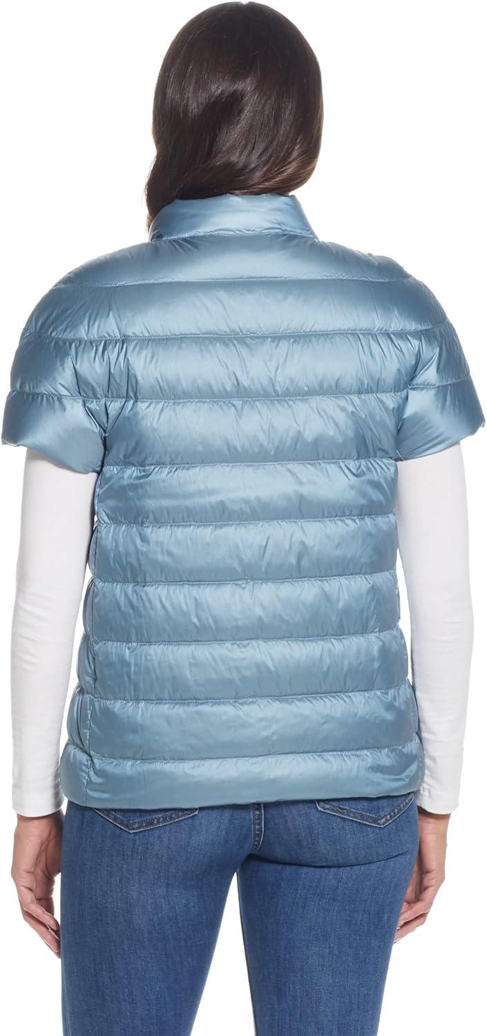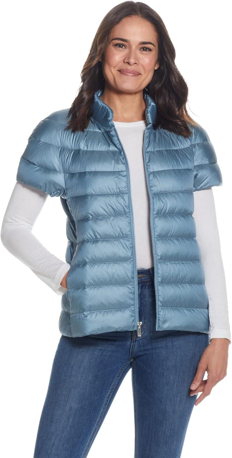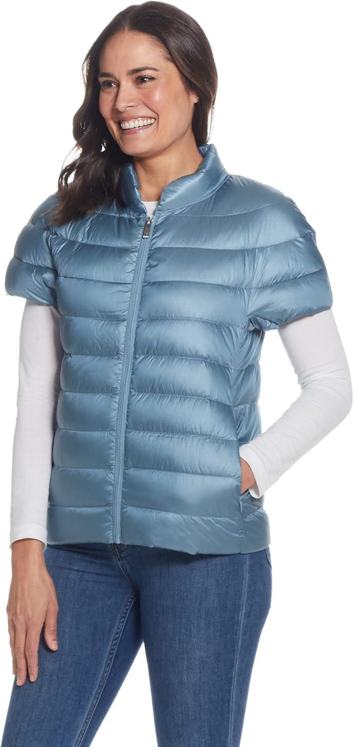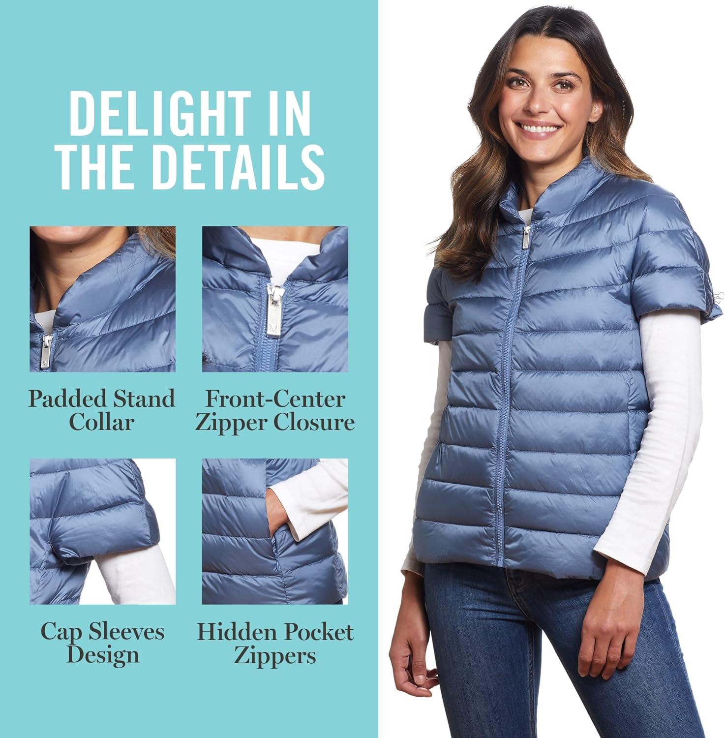 Martha Stewart Women’s Quilted Down Puffer Vest, Lightweight Short Sleeve Packable Jacket with Pockets, Warm Winter Outerwear(Cloud Sky)