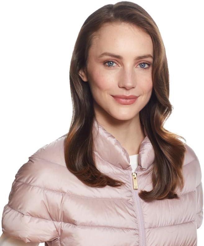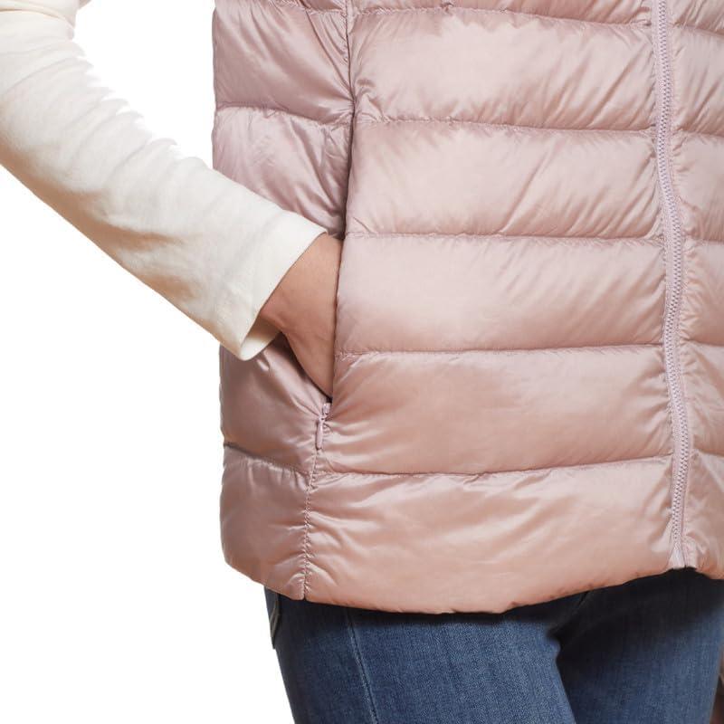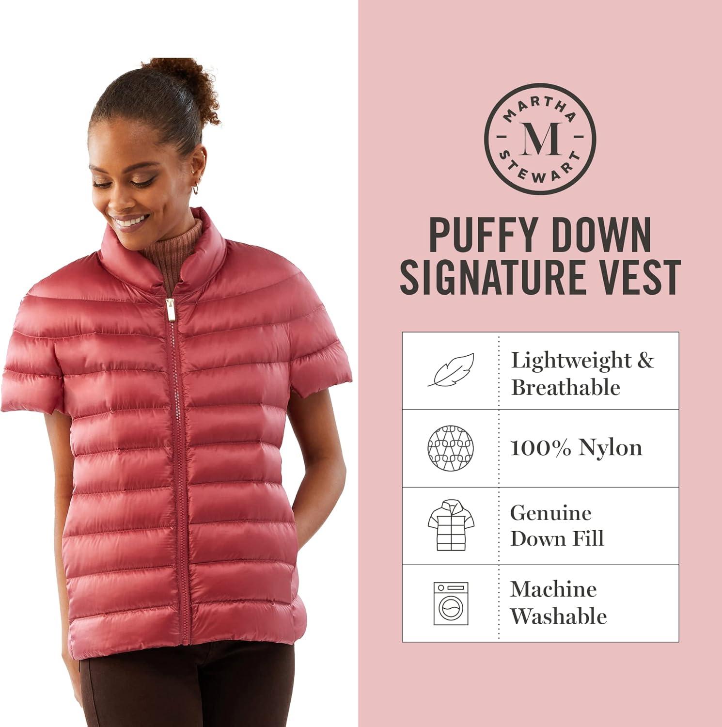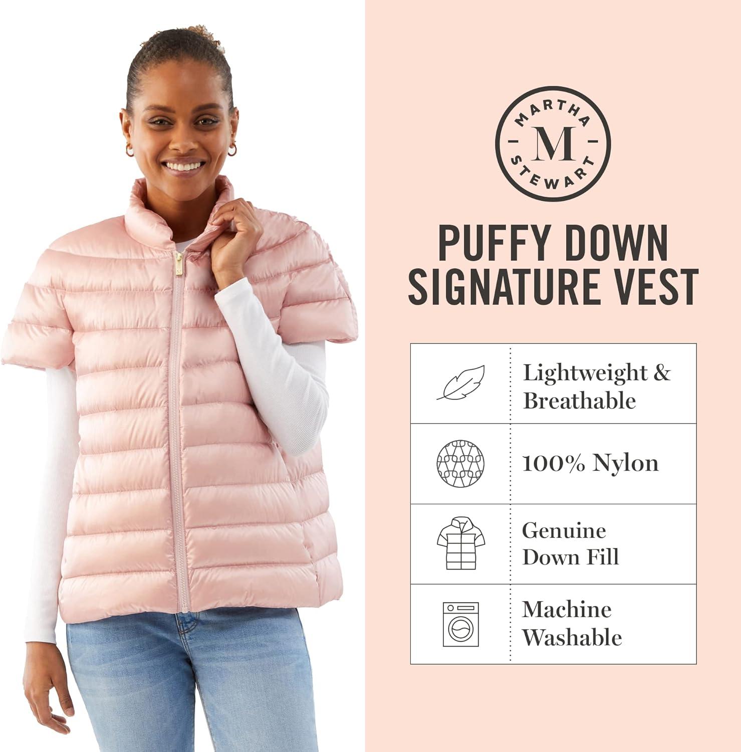 Martha Stewart Women’s Quilted Down Puffer Vest, Lightweight Short Sleeve Packable Jacket with Pockets, Warm Winter Outerwear(Cotton Pink)