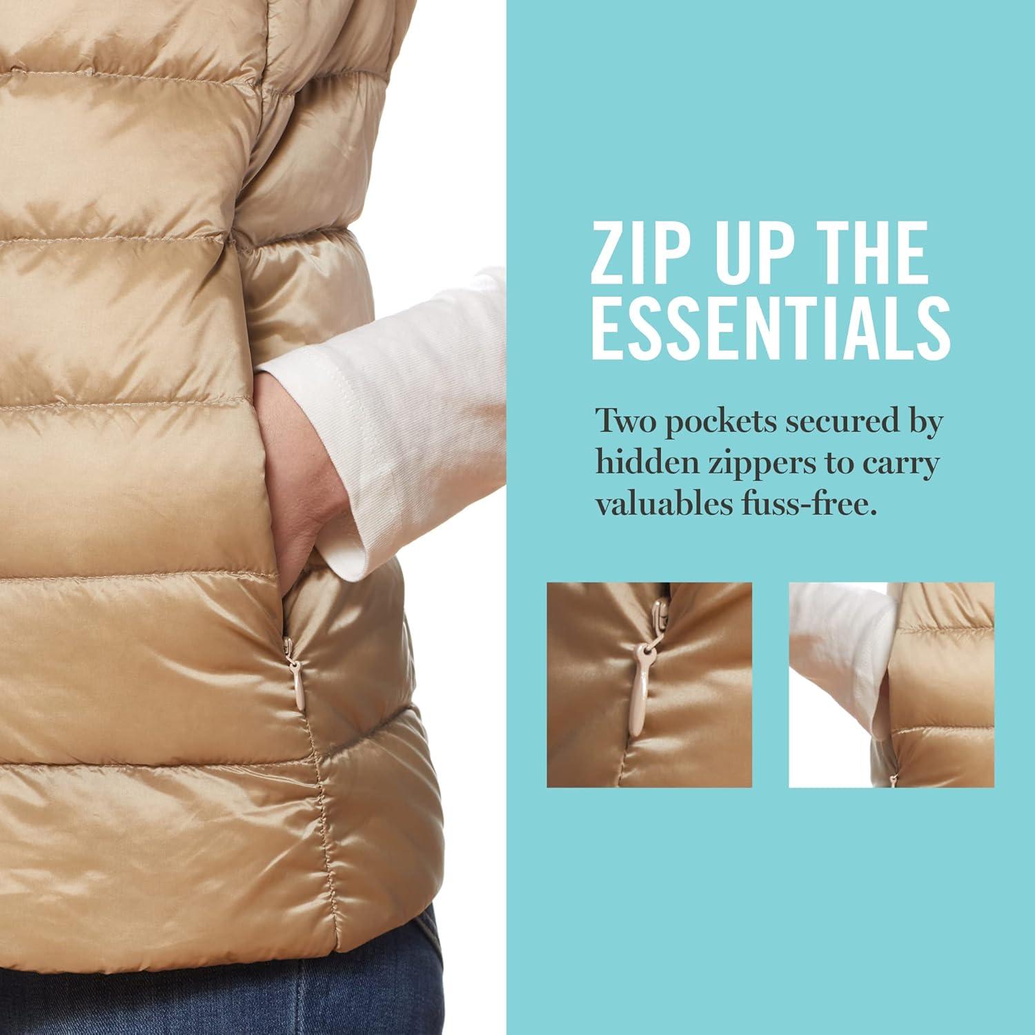 Martha Stewart Women’s Quilted Down Puffer Vest, Lightweight Short Sleeve Packable Jacket with Pockets, Warm Winter Outerwear(Pale Gold)
