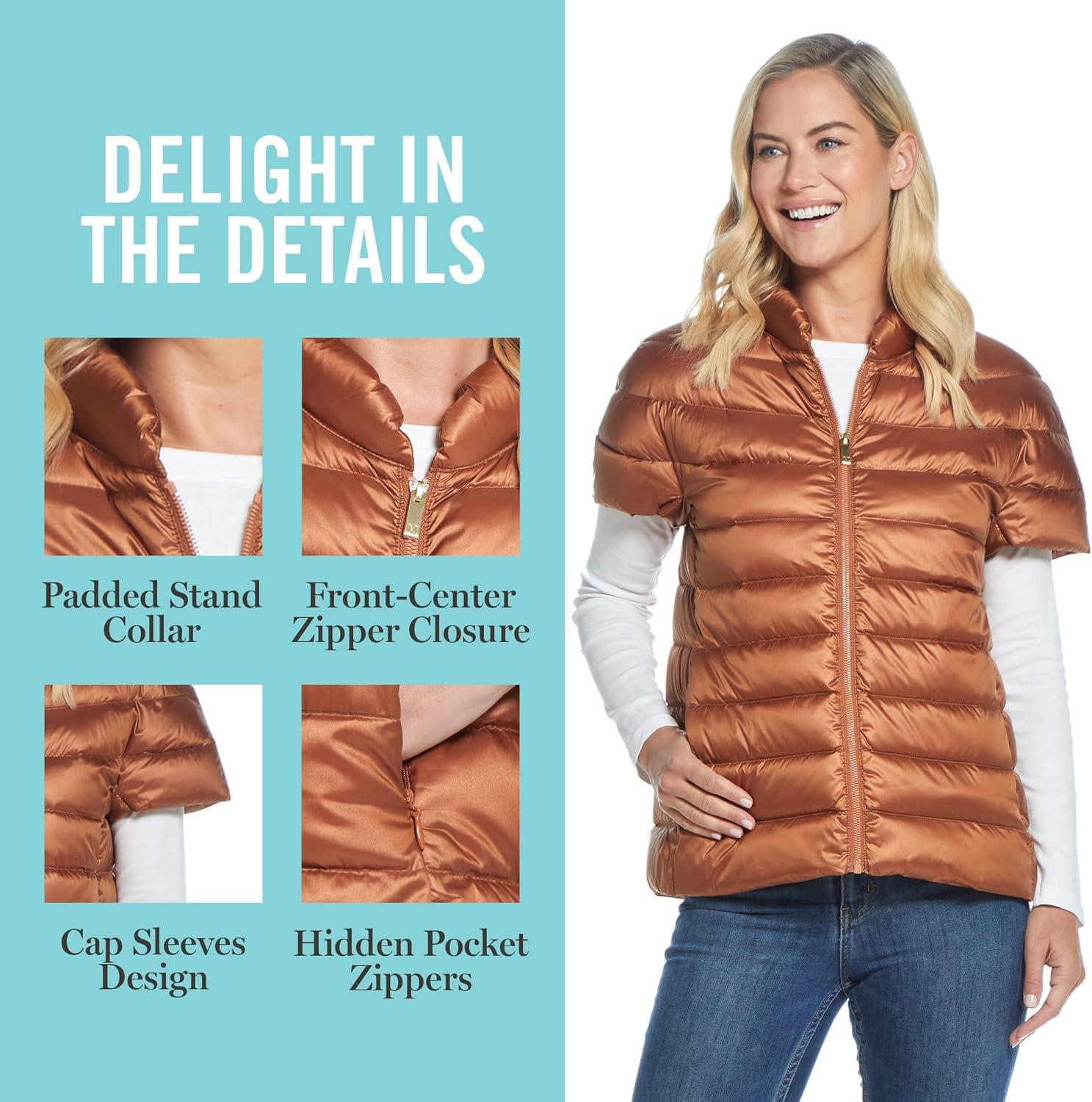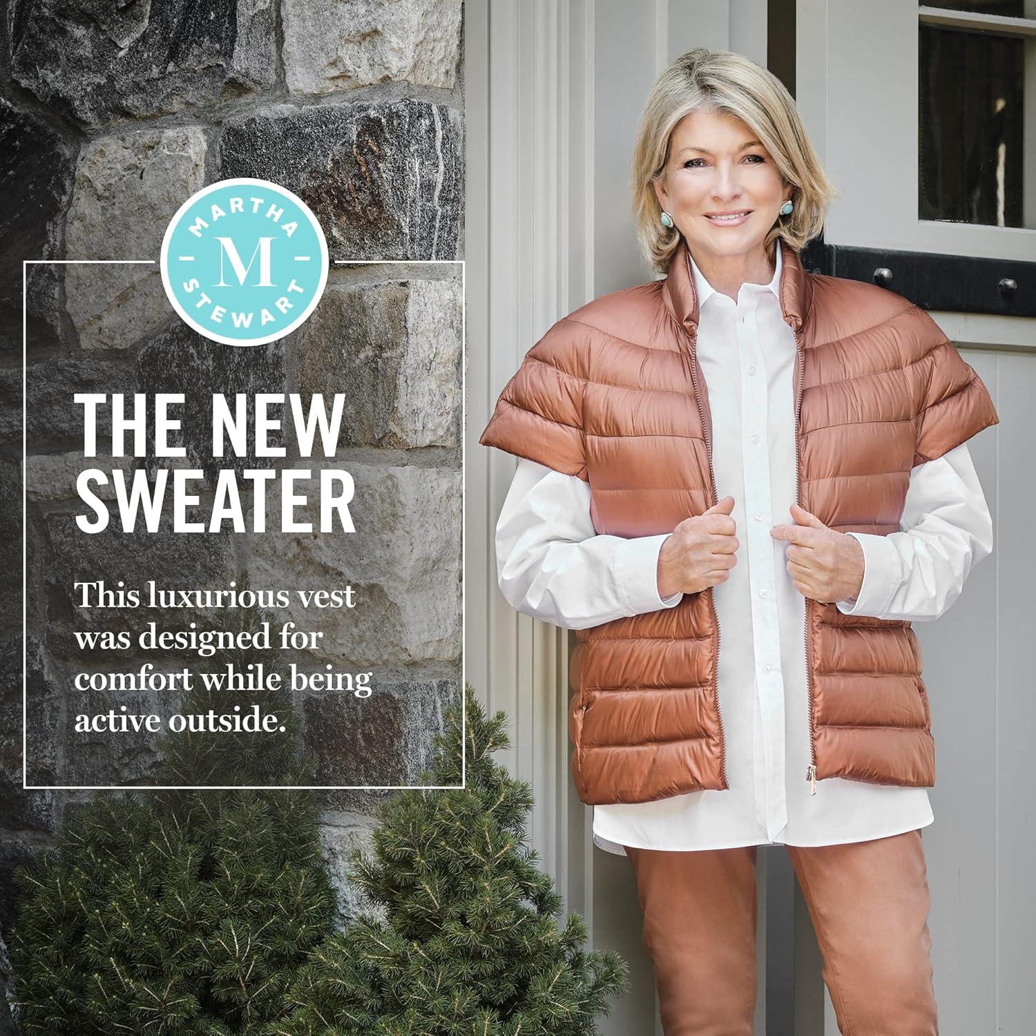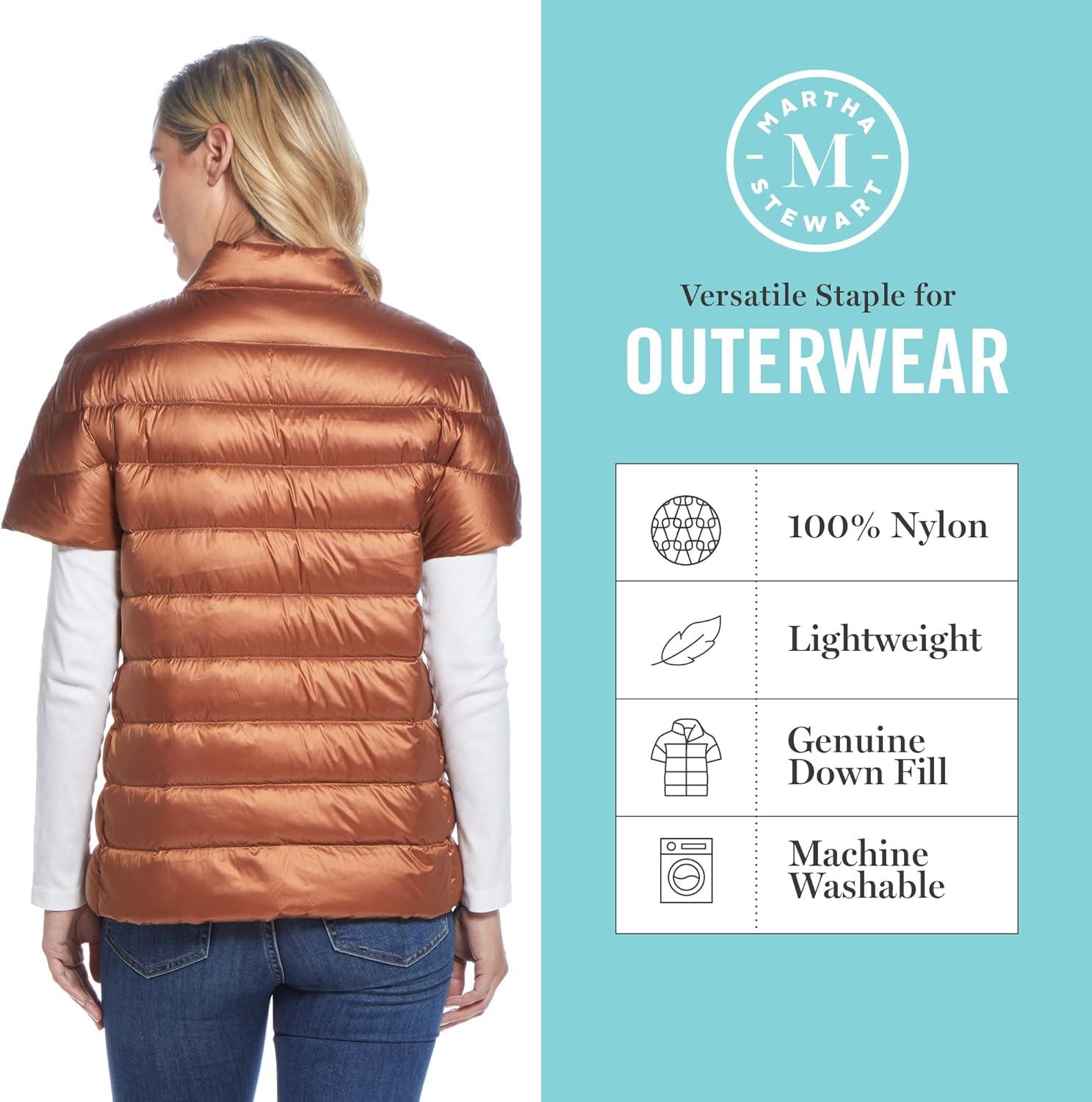 Martha Stewart Women’s Quilted Down Puffer Vest, Lightweight Short Sleeve Packable Jacket with Pockets, Warm Winter Outerwear(Spice)