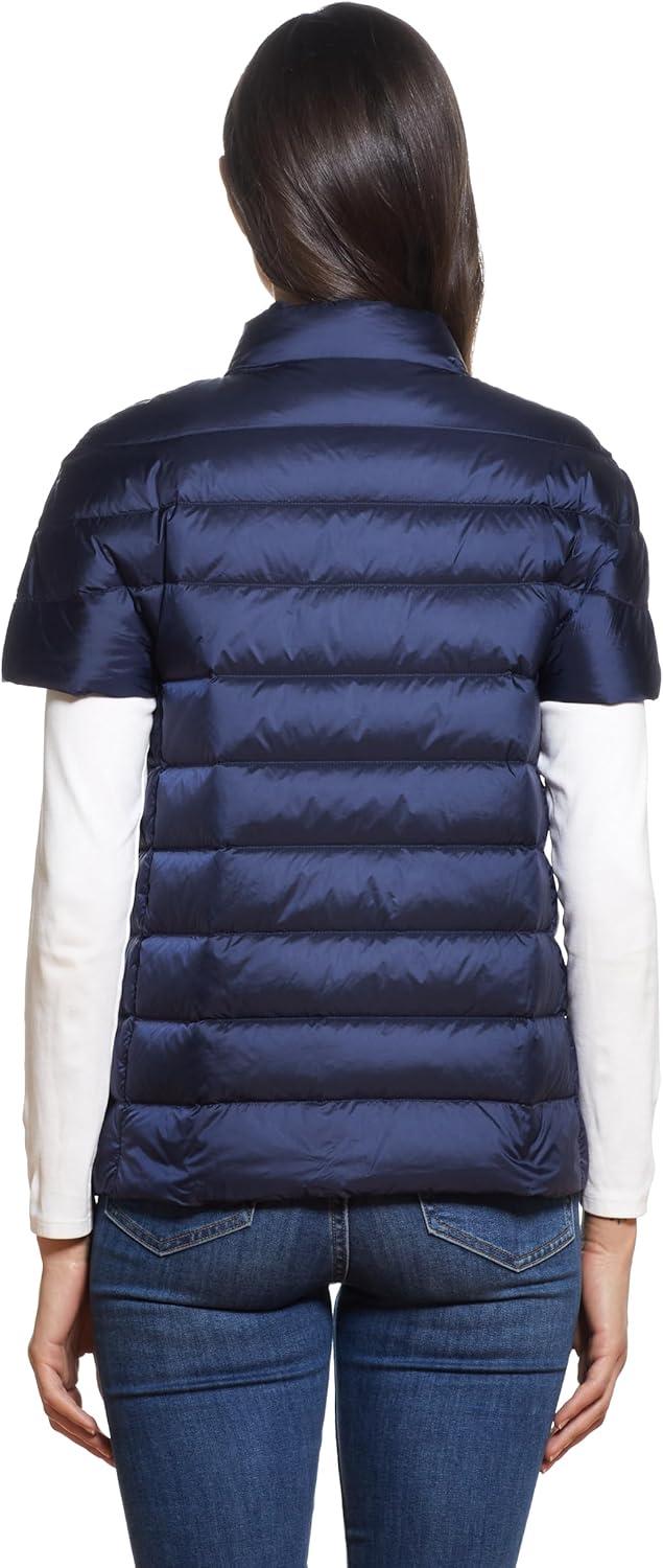 Martha Stewart Women’s Quilted Down Puffer Vest, Lightweight Short Sleeve Packable Jacket with Pockets, Warm Winter Outerwear(Navy)