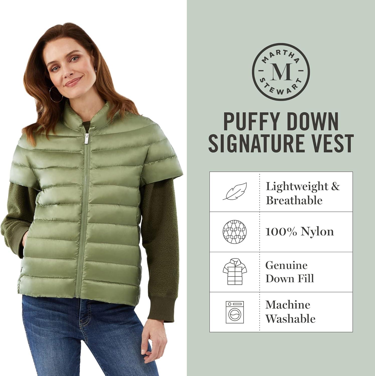 Martha Stewart Women’s Quilted Down Puffer Vest, Lightweight Short Sleeve Packable Jacket with Pockets, Warm Winter Outerwear(Sage)