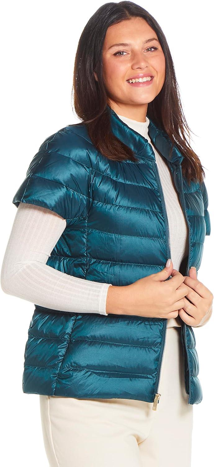 Martha Stewart Women’s Quilted Down Puffer Vest, Lightweight Short Sleeve Packable Jacket with Pockets, Warm Winter Outerwear(Turq Blue)