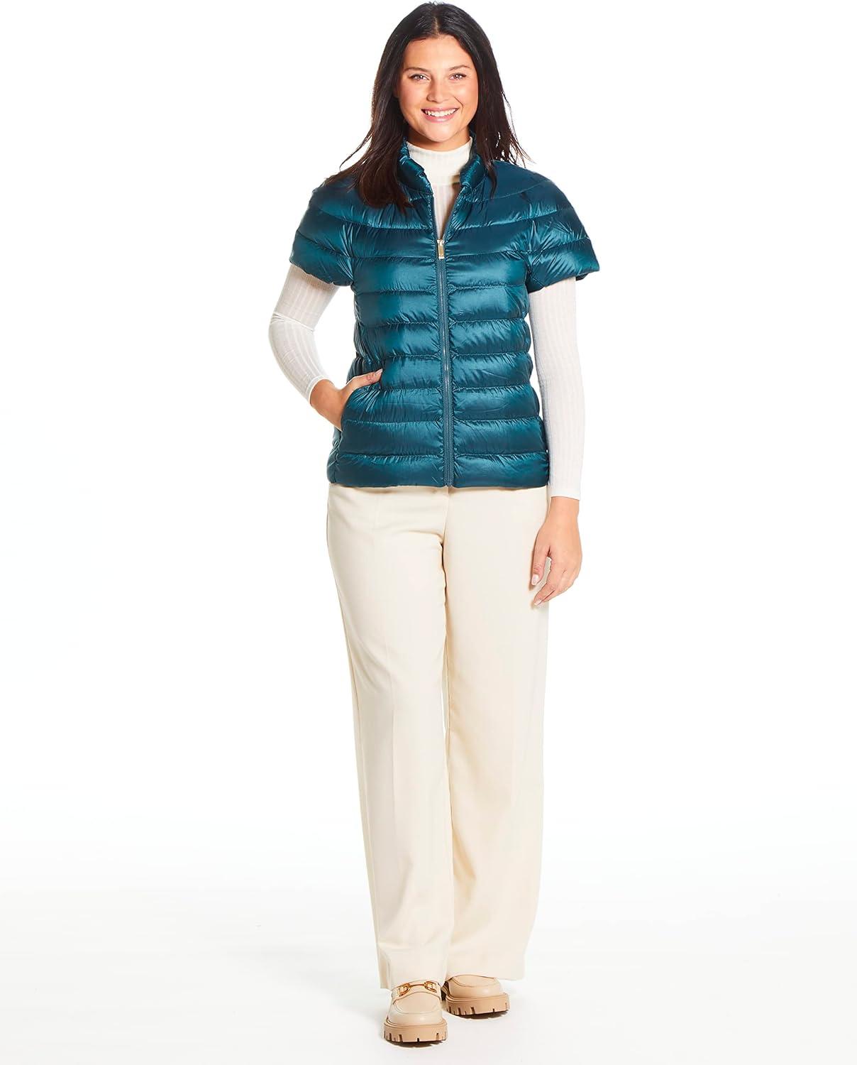 Martha Stewart Women’s Quilted Down Puffer Vest, Lightweight Short Sleeve Packable Jacket with Pockets, Warm Winter Outerwear(Sea Green)