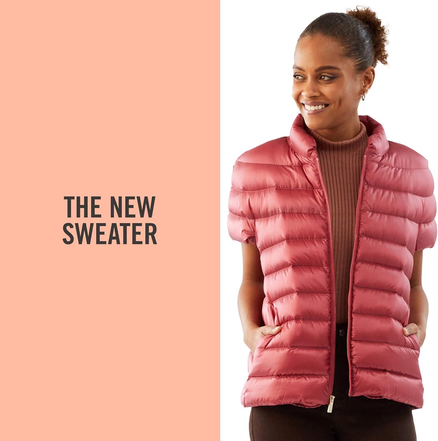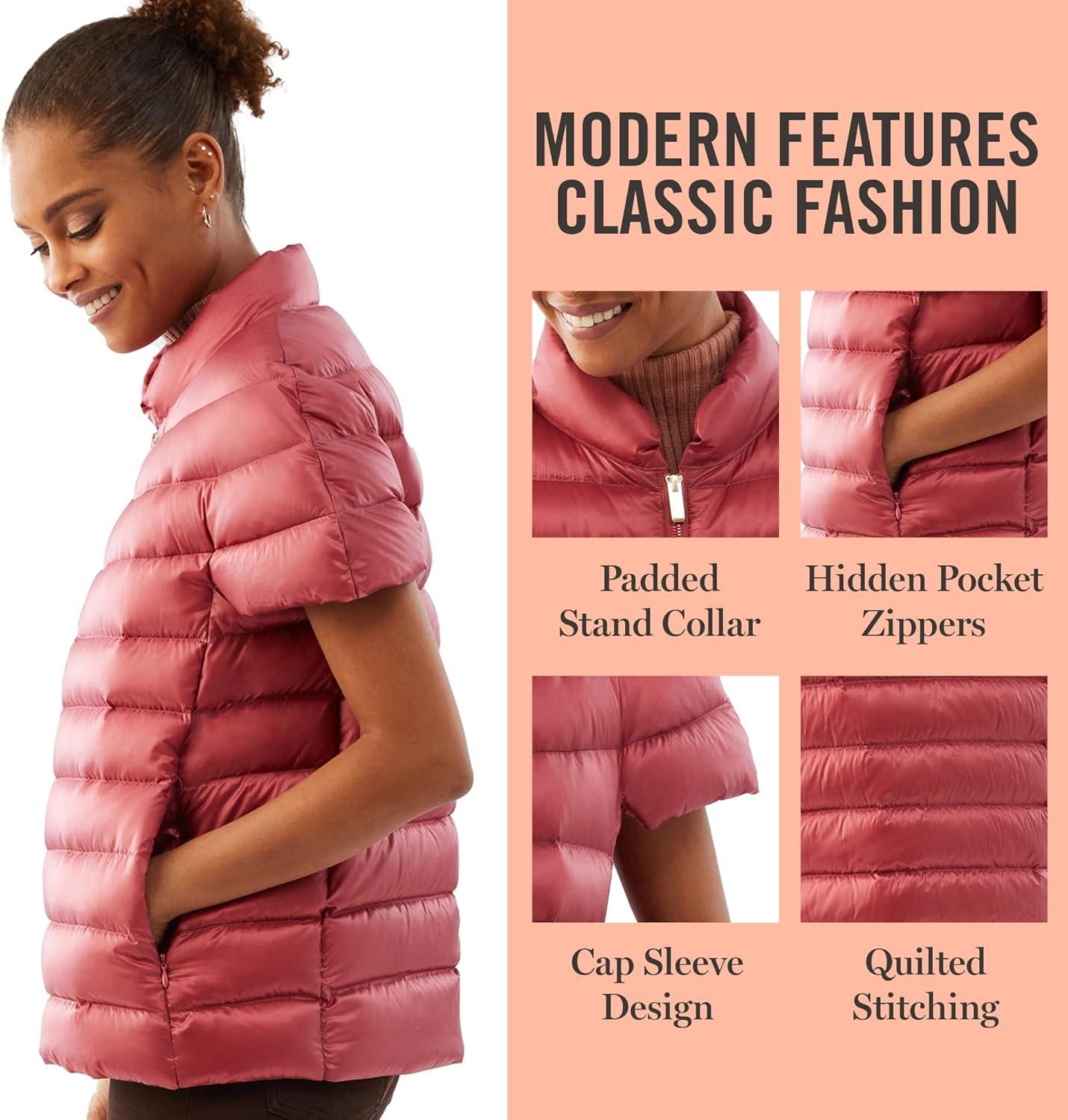 Martha Stewart Women’s Quilted Down Puffer Vest, Lightweight Short Sleeve Packable Jacket with Pockets, Warm Winter Outerwear(Cosmic Pink)