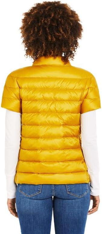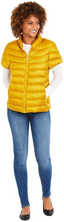 Martha Stewart Women’s Quilted Down Puffer Vest, Lightweight Short Sleeve Packable Jacket with Pockets, Warm Winter Outerwear(Yarrow Gold)