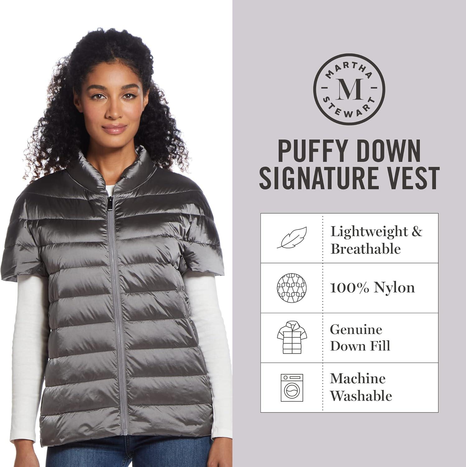 Martha Stewart Women’s Quilted Down Puffer Vest, Lightweight Short Sleeve Packable Jacket with Pockets, Warm Winter Outerwear(Graphite)