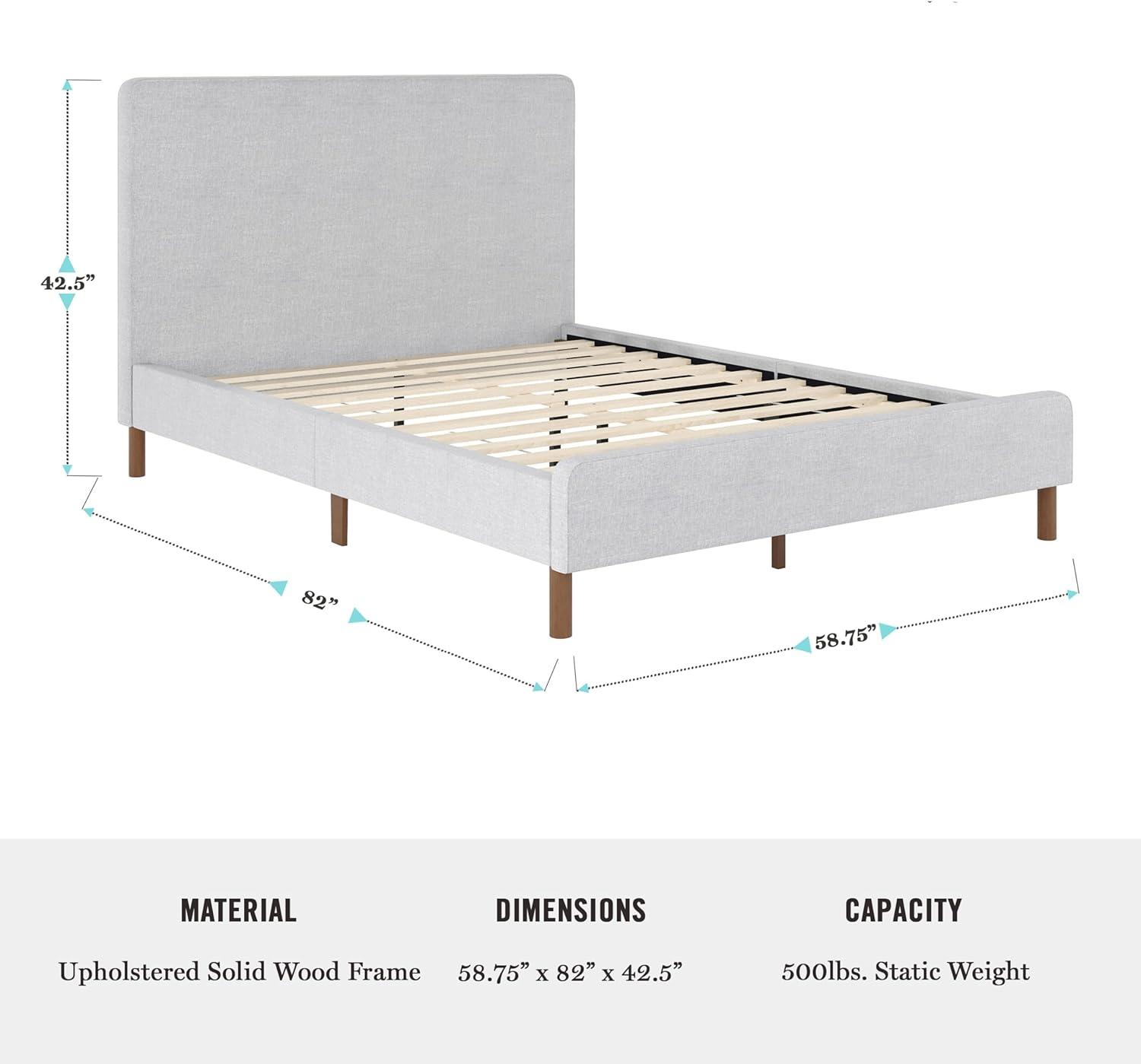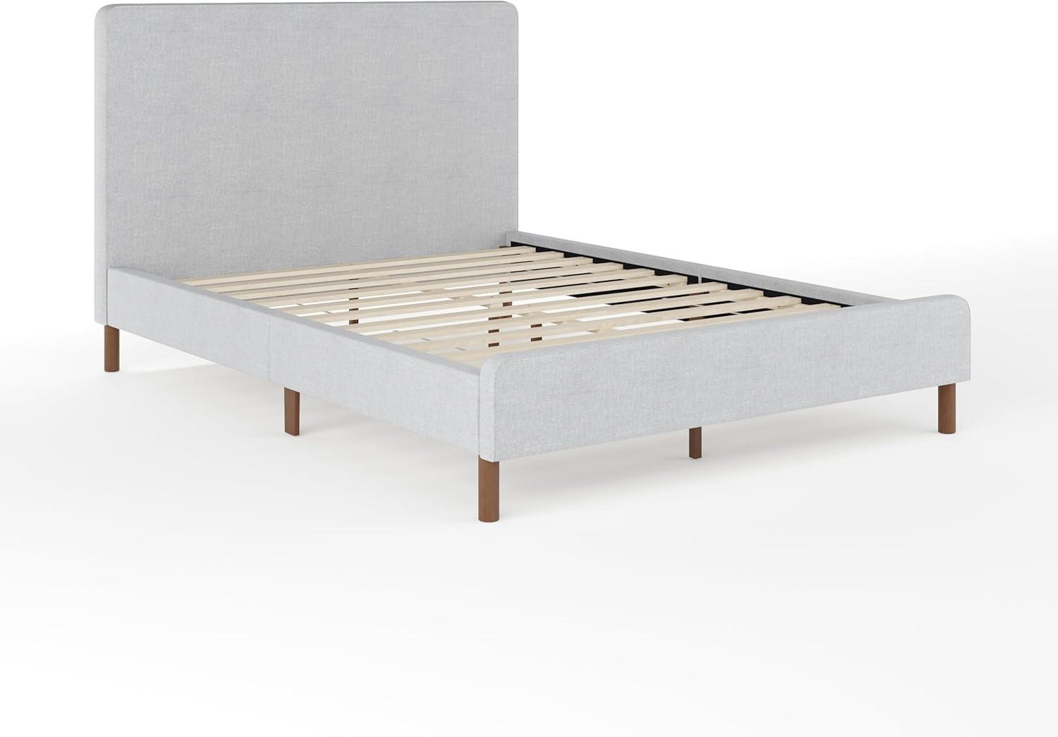 Martha Stewart Britta Platform Bed with Headboard & Footboard, Faux Linen Upholstery with Piping Detail, Rounded Headboard, No Box Spring Needed, Queen, Beige(Gray Fabric/Walnut Legs)