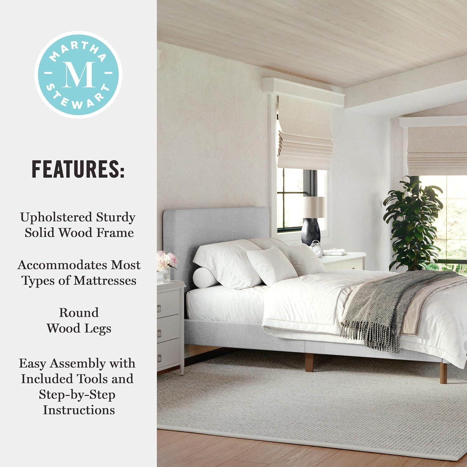 Martha Stewart Jett Platform Bed with Headboard, Fabric Upholstered Inset Headboard and Base, Solid Wood Frame, No Box Spring Needed, Queen, Dark Brown/Beige(Gray Fabric/Brown Gray Frame)
