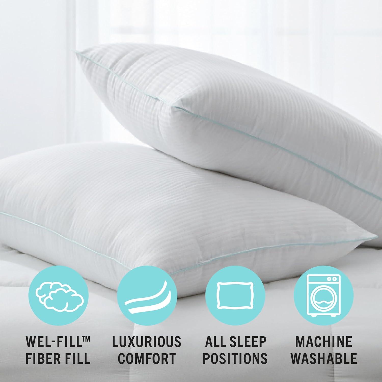 Martha Stewart Classic Comfort Down Alternative Pillows, King Size Set of 2 – Firm Support for Stomach, Back and Side Sleepers(White)