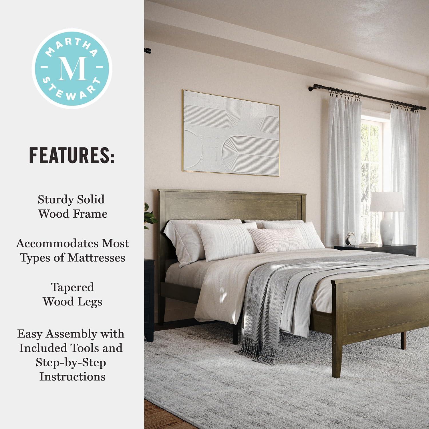Martha Stewart Corbin Solid Wood Platform Bed with Wooden Headboard and Footboard, Wood Slat Foundation, No Box Spring Needed, King, Brown Gray(Brown Gray)