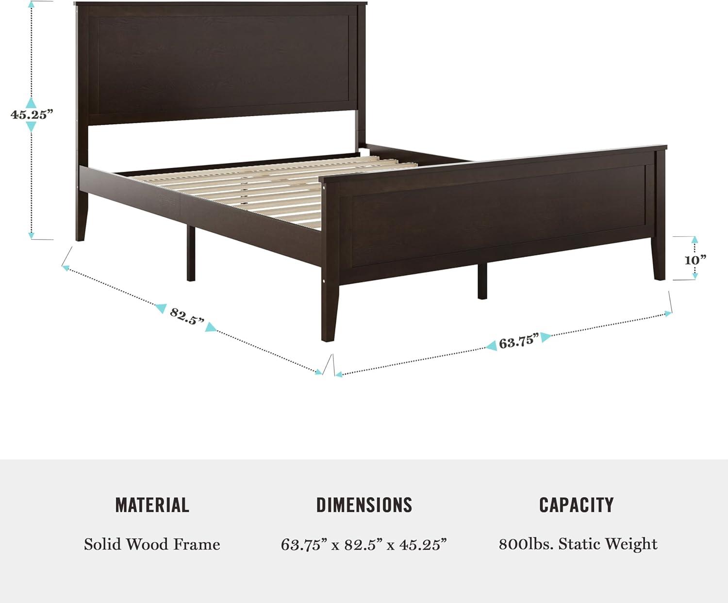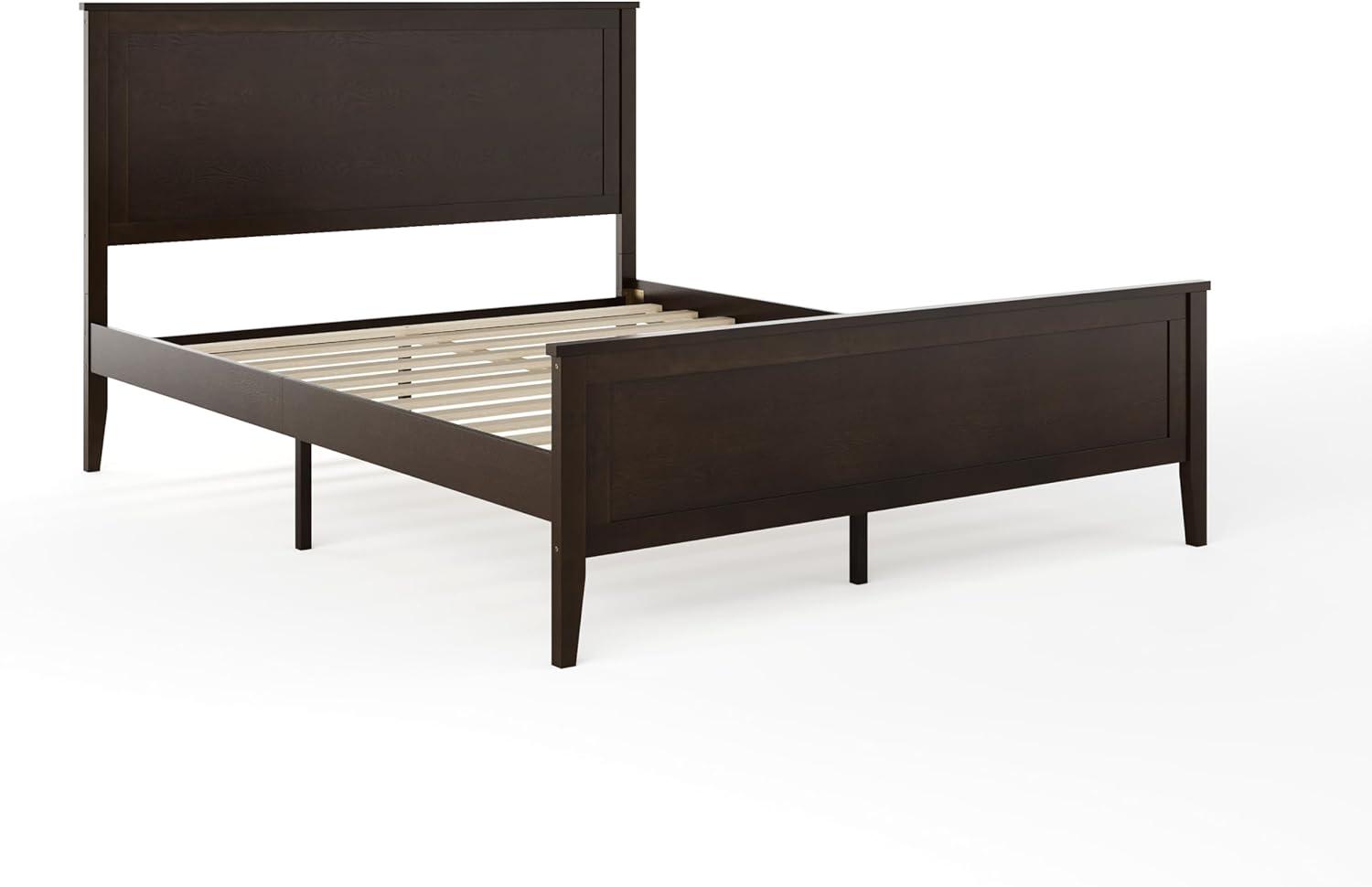 Martha Stewart Corbin Solid Wood Platform Bed with Wooden Headboard and Footboard, Wood Slat Foundation, No Box Spring Needed, King, Brown Gray(Dark Brown)