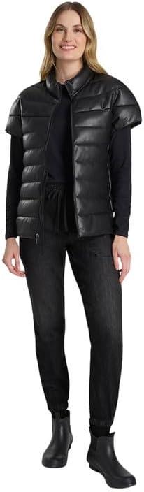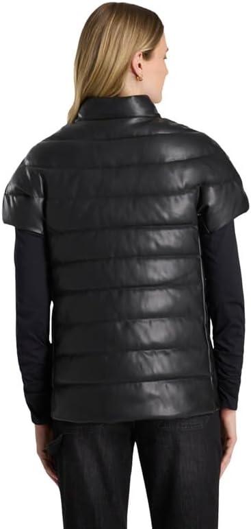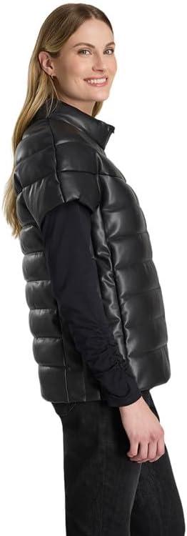 Martha Stewart Women’s PU Quilted Puffer Vest(Black)