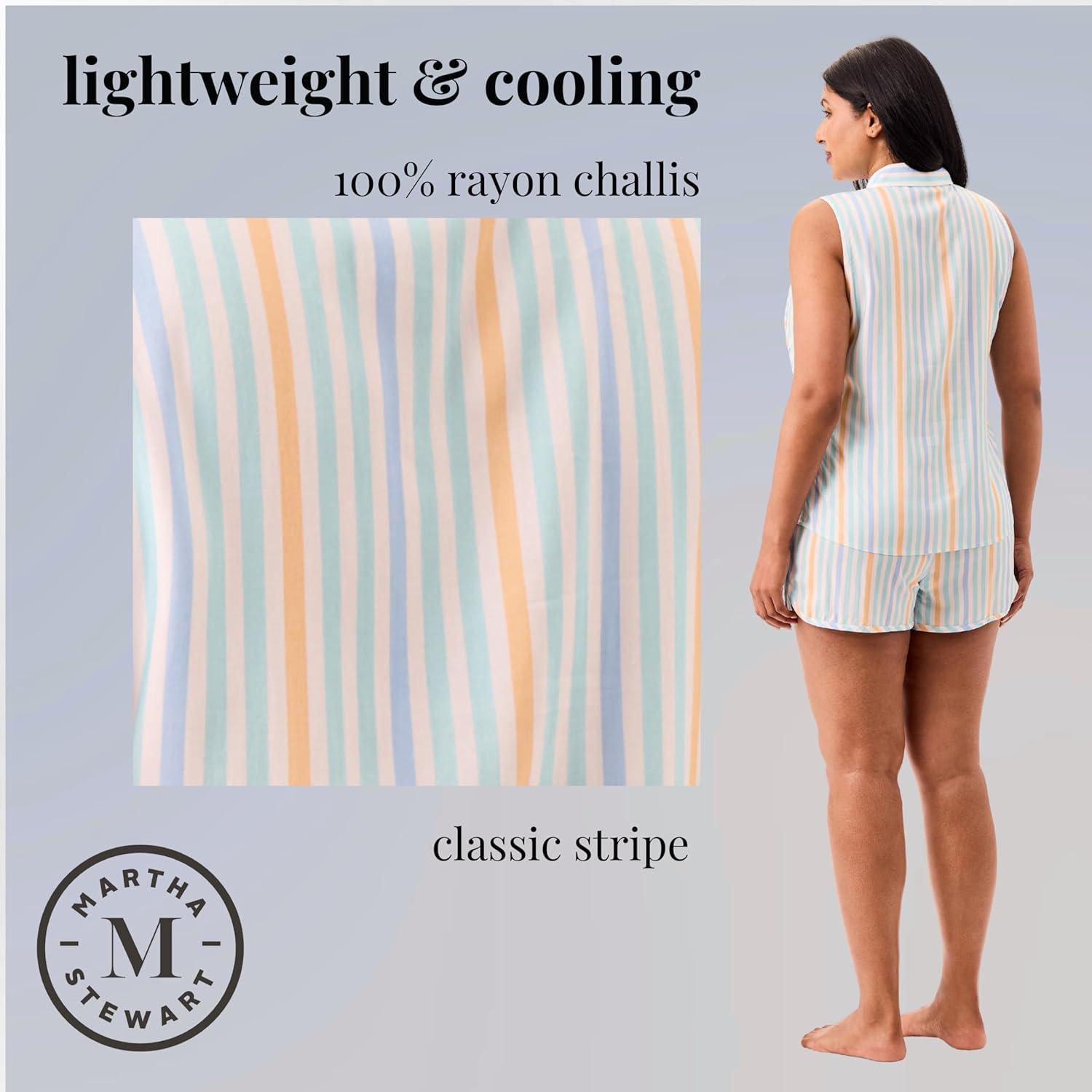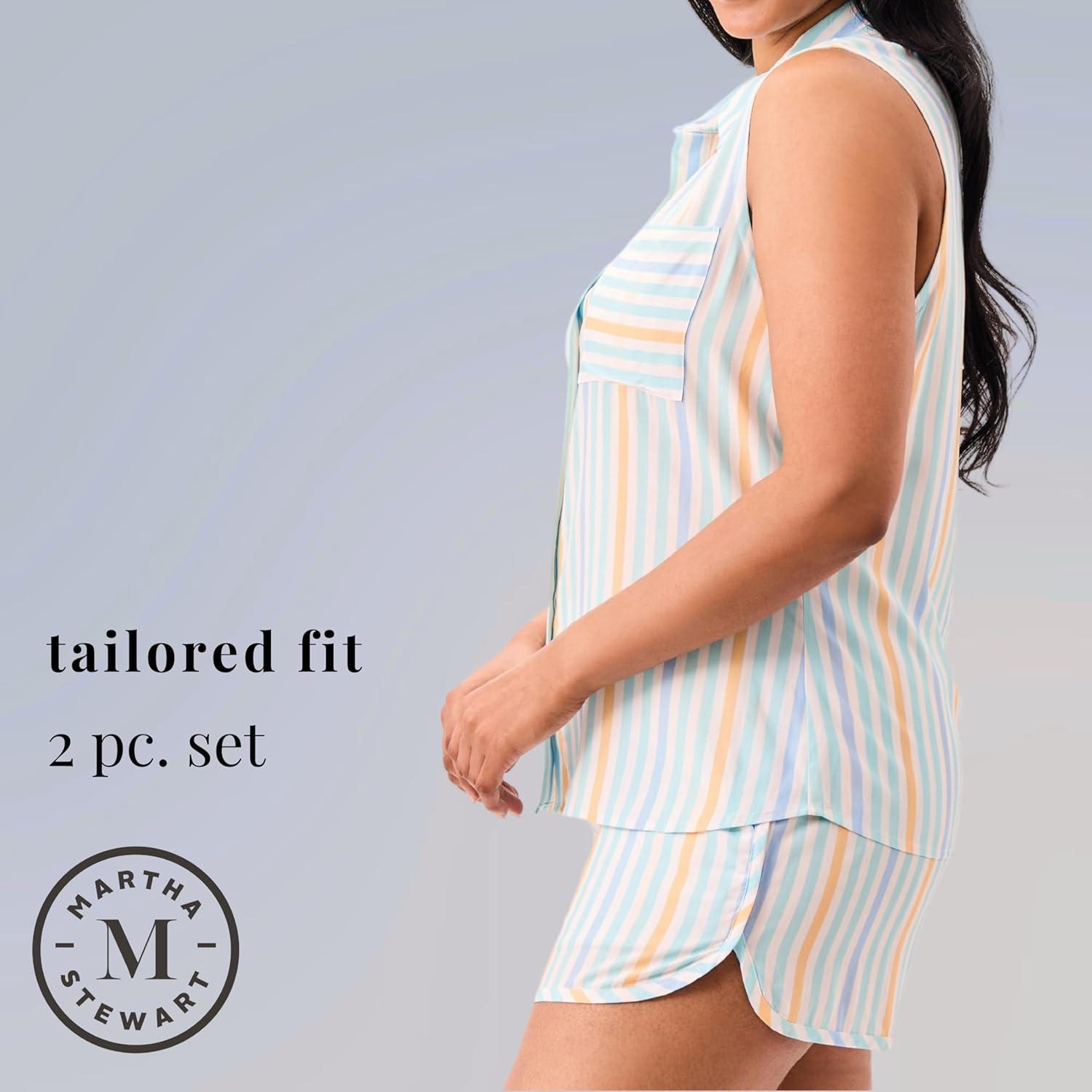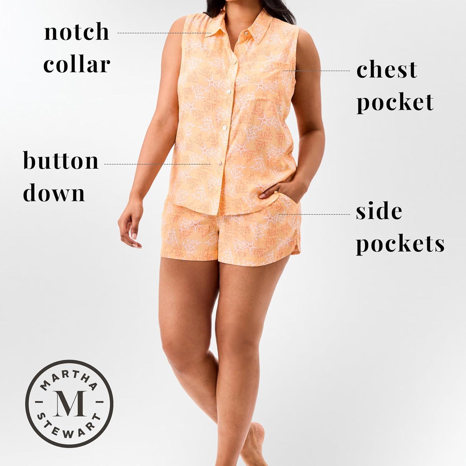 Martha Stewart Women’s Pajama Set | Soft, Breathable Sleepwear | 2-Pc Notch Collar Short Sleeve Button Down | Relaxed Comfort(Dutch Canal)