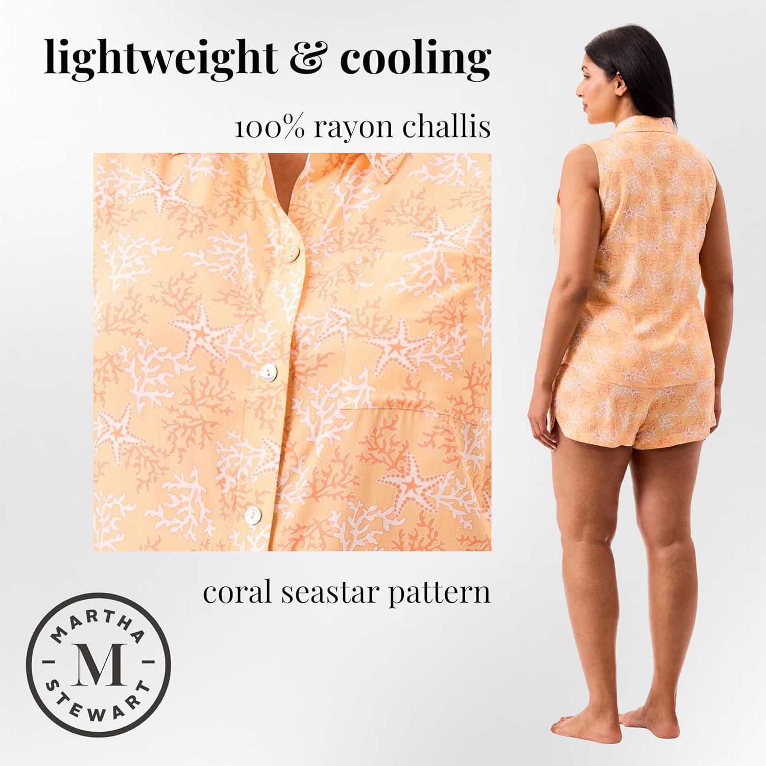 Martha Stewart Women’s Pajama Set | Soft, Breathable Sleepwear | 2-Pc Notch Collar Short Sleeve Button Down | Relaxed Comfort(Peach Fuzz)